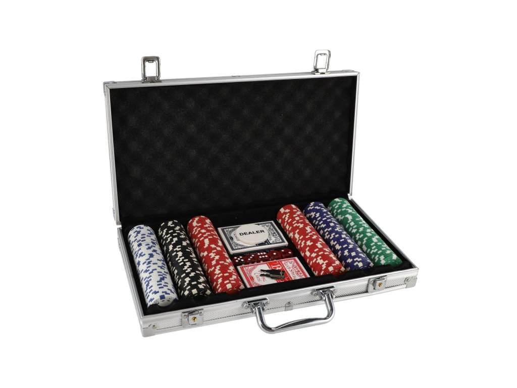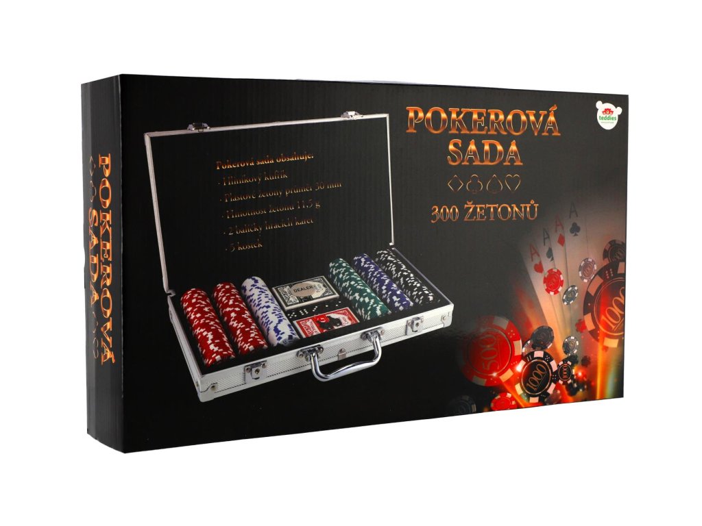 Poker sada 300ks + karty + kostky v hliníkovém kufříku v krabici 40x24x8cm