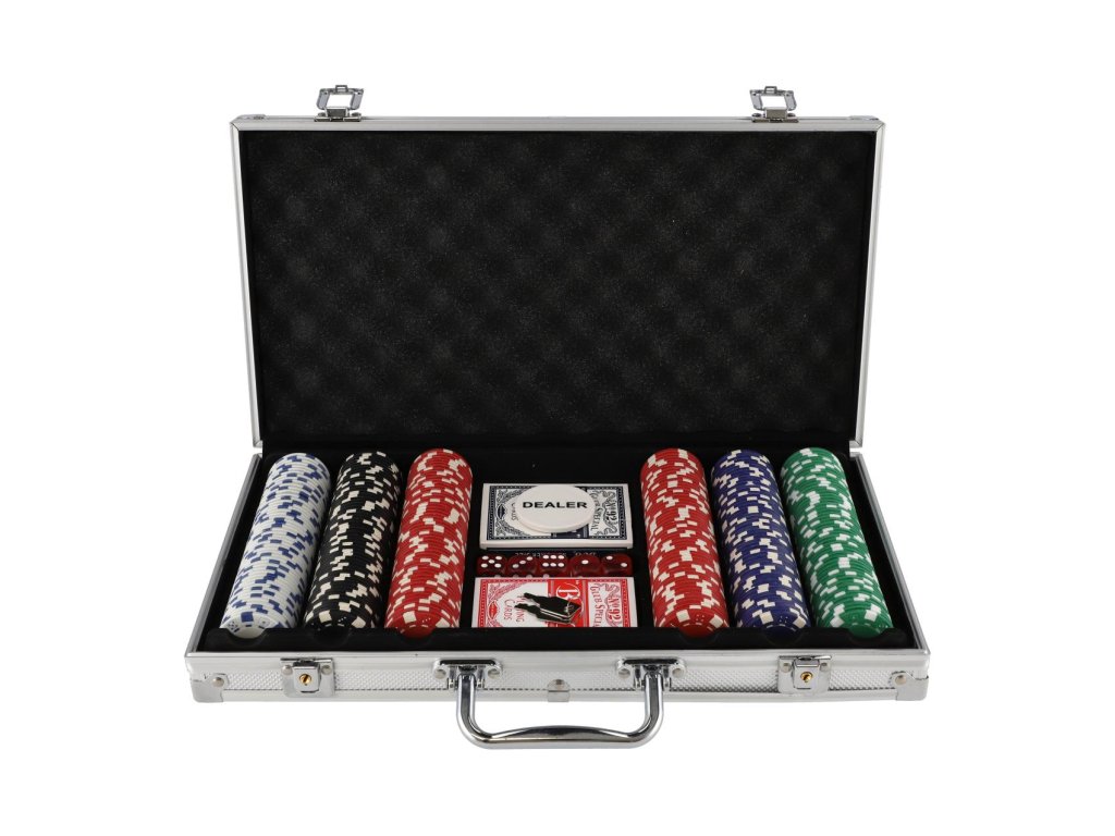 Pokerová sada v elegantním hliníkovém kufříku je ideální pro večery plné zábavy a strategie. Obsahuje 300 žetonů, které poskytují autentický pocit kasina, a to v pěti různých hodnotách. Kromě toho najdete uvnitř kufříku dva balíčky hracích karet, které jsou nezbytné pro všechny oblíbené varianty pokeru a pět kostek. Tato pokerová sada je nejen praktická a snadno přenosná, ale takéje skvělým způsobem, jak sdílet společné chvíle s přáteli nebo rodinou.Sada obsahuje: žetony (300 ks, průměr 30mm, hmotnost 11,5g), 2 balíčky karet, 5 kostek