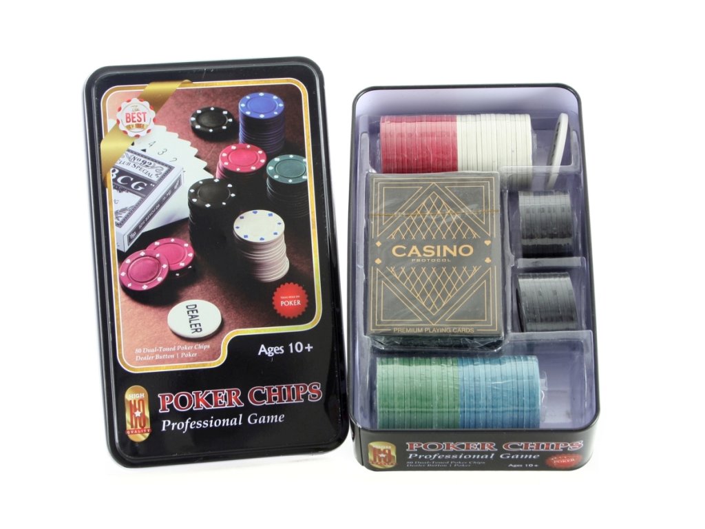 Sada na poker v plechové dóze. Obsahuje karty, želony a návod. Rozměry balení cca 11,5 x 19 x 5 cm.Doplňkové parametry