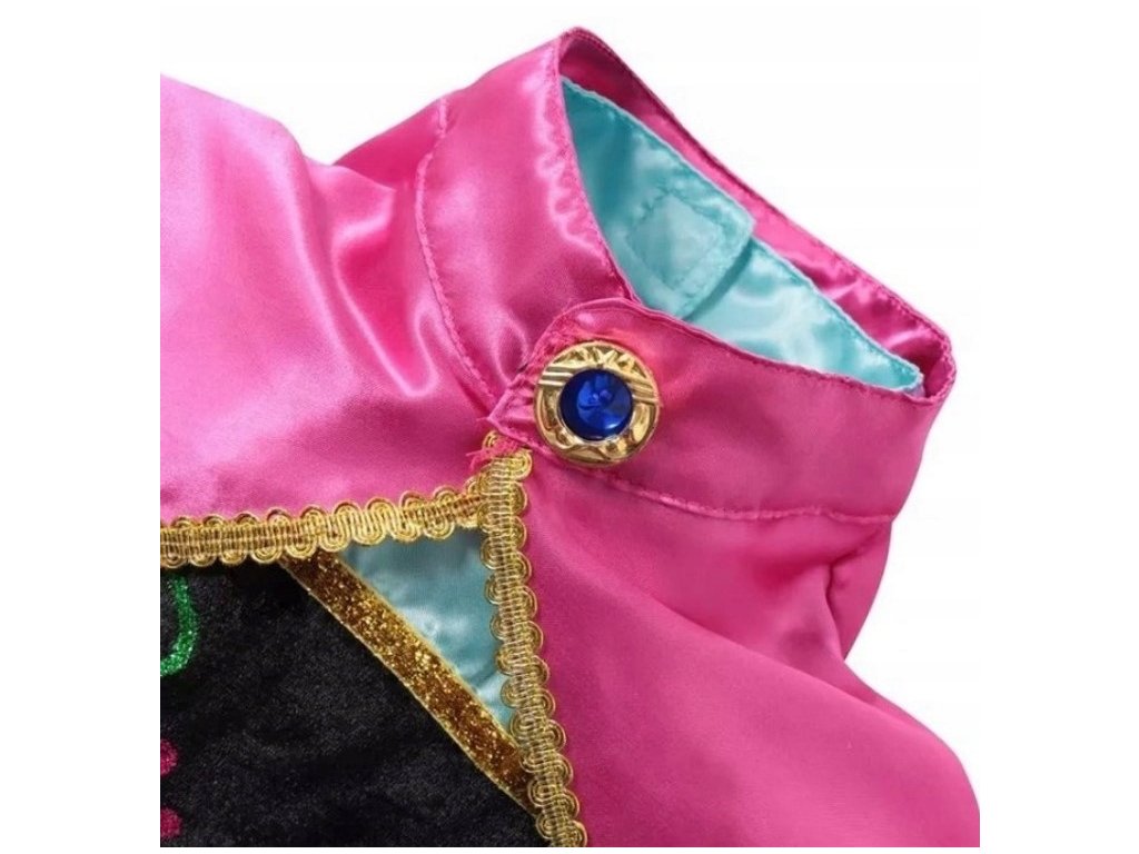 Dětský karnevalový kostým Anna Frozen, jedné z hlavních hrdinek Ledového království. Sukně kostýmu je v krásných pestrých barvách s vyšívanými motivy. Doplňkem šatů je jemná pelerína se zapínáním u krku. Modrá lesklá sukně je v pase nařasená do gumičky s ozdobným zlatým lemem. Dlouhé rukávy jsou hladké a lehké - dotvoří celkový vzhled a zaručí půvab každé malé princezny. Zažijte magii s kouzelným dětským karnevalovým kostýmem Anny z filmu Ledové království. Tento kostým je ideální pro dětské karnevaly, oslavy narozenin, nebo kdykoli se vaše malá princezna chce cítit jako skutečná Anna z Frozen. Díky kvalitnímu zpracování a pohodlným materiálům bude vaše dítě v tomto kostýmu vypadat a cítit se skvěle. Za originální proměnu jistě vaše holčička získá spoustu chvály. Není určeno pro děti do 3 let. Obsah balení šaty pelerína Rozměry (poloviční obvody měřené naplocho) celková délka cca 65 cm šíře v podpaží cca 26 cm obvod v pase cca 28 cm délka rukávu od ramene cca 28 cm velikost S 98-104 (výška postavy v cm) Materiál 100% polyester Údržba žehlete každou vrstvu zvlášť přes bavlněný ubrousek, nebo pouze napařováním prát pouze ručněDoplňkové parametry