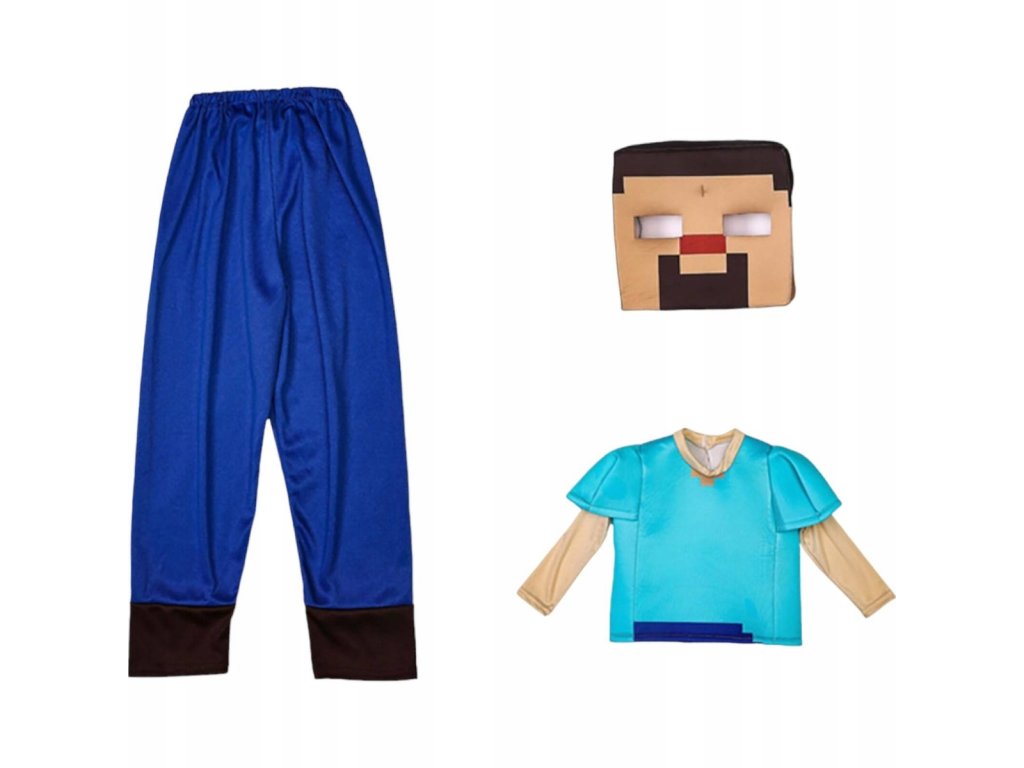Kostým Minecraft Steve je ideální volbou pro všechny hráče a fanoušky Minecraftu, kteří chtějí vstoupit do role této ikonické postavy. Tento kostým obsahuje kostkované tričko a modré kalhoty, což vám umožní se snadno proměnit v Steva, hlavní postavu hry Minecraft. Můžete ho nosit na cosplayových akcích, na Halloween nebo na kostýmových večírcích a zaručeně zaujmout ostatní hráče a fanoušky Minecraftu. Charakteristika postavy Steva v Minecraftu spočívá v jeho jednoduchém, ale ikonickém vzhledu. Steve je základní postavou hry, která je známá svou dobrodružnou povahou a schopností těžit a stavět v Minecraftovém světě. Tento kostým vám umožní stát se touto legendární postavou a prozkoumat svět Minecraftu jako nikdy předtím. Kostým je vyroben z kvalitních materiálů, což zajišťuje pohodlné nošení a odolnost. Kostkované tričko a modré džínové kalhoty jsou pevné a dobře padnou, což vám umožní pohybovat se s lehkostí a pohodlím. S tímto kostýmem budete nejen vypadat jako Steve, ale budete se cítit skvěle a připraveni na dobrodružství ve světě Minecraftu. Obsah balení triko kalhoty Ke kostýmku je dodávaná textilní univerzální maska zdarma. Rozměry (poloviční obvody měřené naplocho) kalhoty šíře pasu s gumou cca 25 cm kalhoty délka od pasu cca 69 cm šíře trika cca 45 cm triko délka cca 47 cm triko délka rukávu od ramene cca 45,5 cm velikost 116-122 M (výška postavy v cm) Materiál 100% polyester Údržba žehlete každou vrstvu zvlášť přes bavlněný ubrousek, nebo pouze napařováním prát pouze ručněDoplňkové parametry