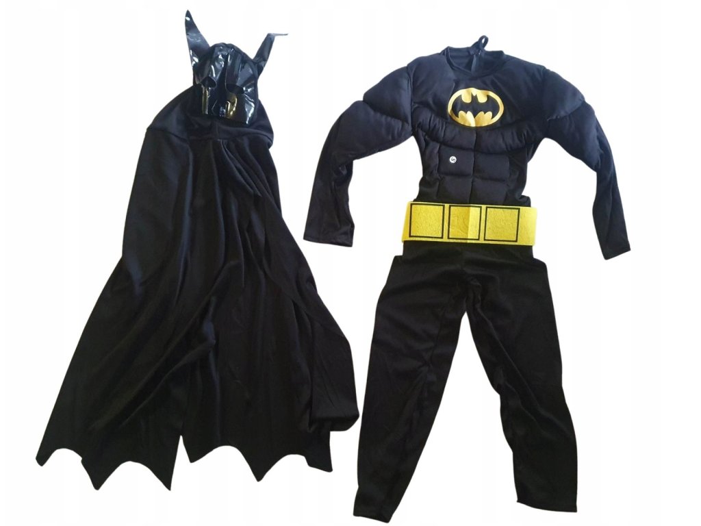 Dětský karnevalový kostým Svalnatý Batman. Tento úžasný kostým je inspirován ikonickým Temným rytířem a obsahuje vše, co vaše dítě potřebuje k tomu, aby se cítilo jako skutečný superhrdina. S výraznými detaily a realistickým vzhledem, tento kostým určitě zaujme na každém karnevalu, halloweenské párty nebo kostýmovém večírku. Vaše dítě bude připraveno na dobrodružství v Gothamu v tomto působivém Batmanově kostýmu. Díky kvalitnímu zpracování a pohodlným materiálům bude vaše dítě v tomto kostýmu vypadat a cítit se skvěle. Součástí sady je overal, který má pohodlné zapínání na zip v zadní části a v hrudní části je vyztužený pružnou pěnou. V pase je overal stažen gumou, kterou kryje dekorační pás kostýmu. Součástí sady je i plášť s maskou zapínaný v zadní části šňůrkou. Získejte pro svého malého hrdinu kostým Batmana a dejte mu příležitost vstoupit do světa superhrdinů a tajemných dobrodružství! Není určeno pro děti do 3 let. Obsah balení overal pás maska s pláštěm Rozměry (poloviční obvody měřené naplocho) celková délka od ramene cca 108 cm šíře v podpaží cca 35 cm délka rukávu od ramene cca 42 cm vnitřní délka rukávu 33 cm vnitřní délka nohavice cca 54 cm maska s pláštěm univerzální velikost velikost L 122-128 (výška postavy v cm) pro věk 6-8 let Materiál 100% polyester Údržba žehlete každou vrstvu zvlášť přes bavlněný ubrousek, nebo pouze napařováním prát pouze ručněDoplňkové parametry