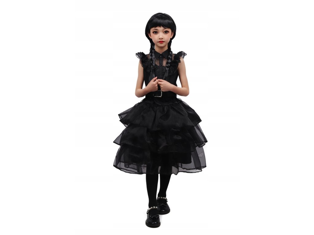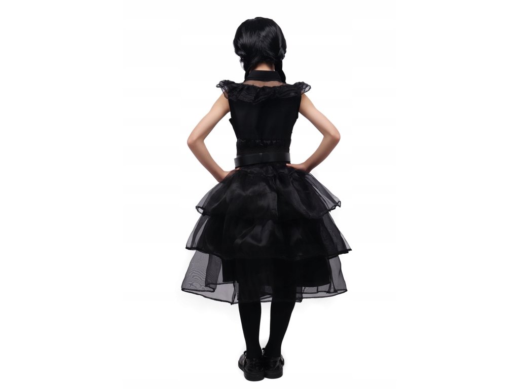 Dětský karnevalový kostým Wednesday s parukou. Tento kostým je skvělou volbou pro dětské karnevaly, Halloween, nebo jakoukoli jinou událost. Díky kvalitnímu zpracování a pohodlným materiálům bude vaše dítě v tomto kostýmu vypadat a cítit se skvěle. Za originální proměnu do jedné z nejznámějších postav z kultovní Adamsovy rodiny - Wednesday, jistě dítě získá spoustu chvály. Poznámka pro rodiče: Nezapomeňte přidat nějaké temné make-upy, které doplní kostým a paruku, aby dítě co nejvíce podobala svému filmovému vzoru. Není určeno pro děti do 3 let Obsah balení šaty pásek paruka Rozměry (poloviční obvody měřené naplocho) celková délka 83 cm šíře v podpaží 38 cm šířka v pase 30 cm velikost 110-122 M (výška postavy) Materiál 100% polyester Údržba žehlete každou vrstvu zvlášť přes bavlněný ubrousek, nebo pouze napařováním prát pouze ručněDoplňkové parametry