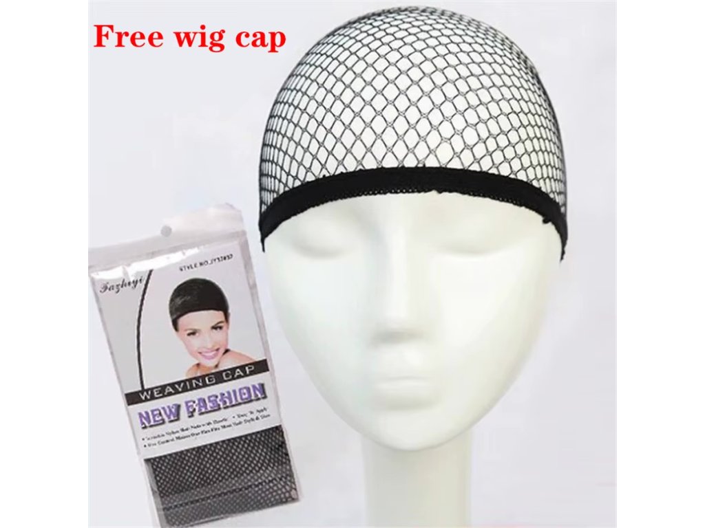 Vlasy stáhněte do drdolu a nasaďte síťku (wig cap). (viz obrázek „Free wig cap“)