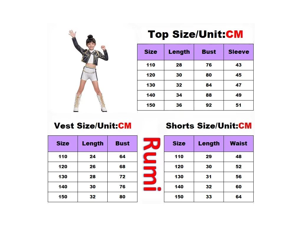Rumi – velikostní tabulka