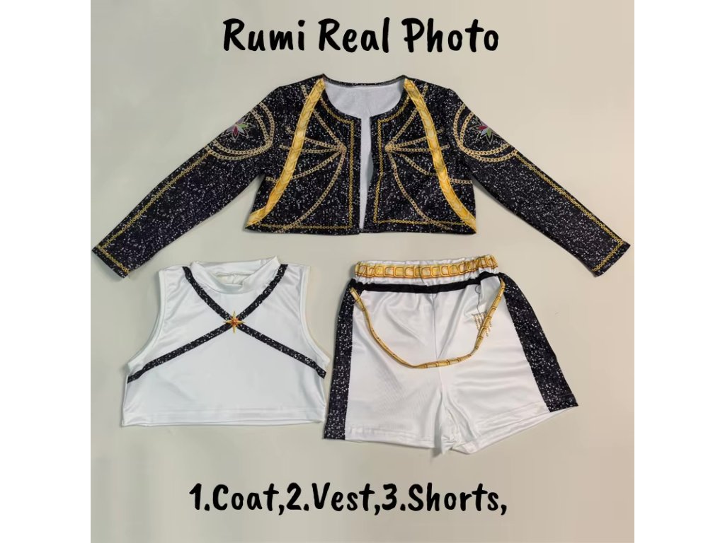 Dívčí 3-dílný cosplay kostým KPop Demon Hunters (Huntrix) - Rumi, Zoey a Mira (SKLAD)