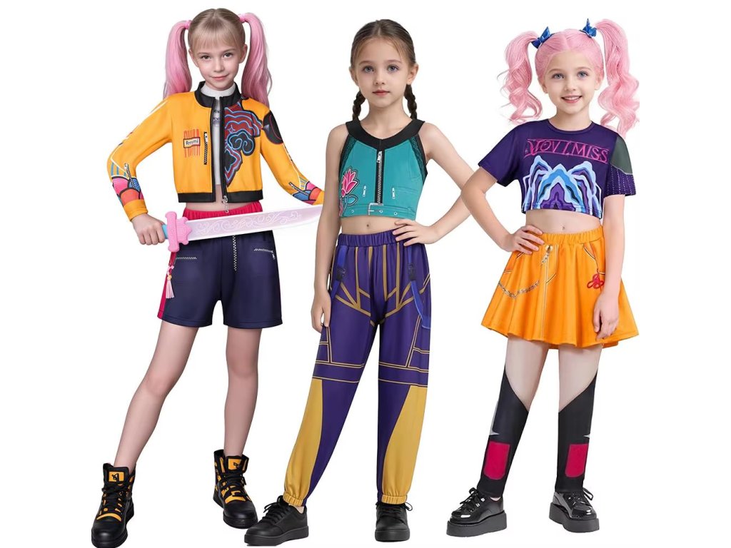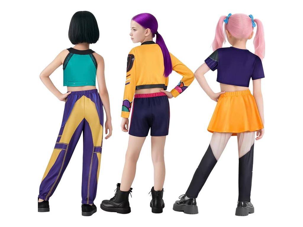 Vstup do světel reflektorů s kostýmy Rumi, Zoey a Mira inspirovanými filmem KPop Demon Hunters! 👗✨ Tyto kostýmy jsou ideální volbou pro každou moderní dívku, která miluje tanec, hudbu a vyjádření svého stylu. Vyrobené z kvalitního polyesteru, kombinují pohodlí s odolností a díky výrazným barvám i originálním designům se stanou hvězdou každé akce – ať už půjde o Halloween, vánoční párty nebo školní vystoupení. 🎃🎄🎤