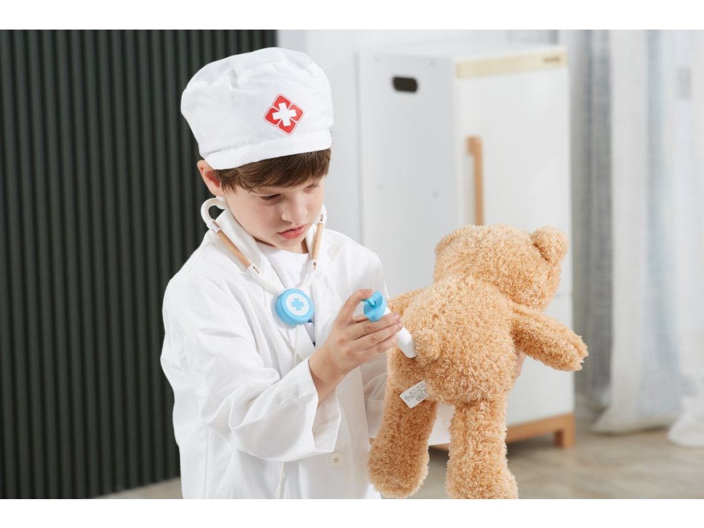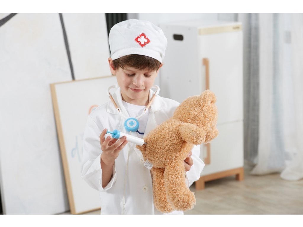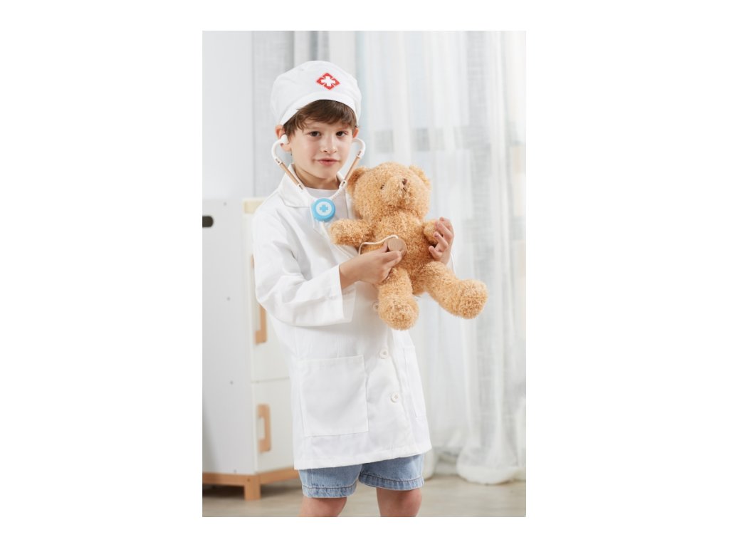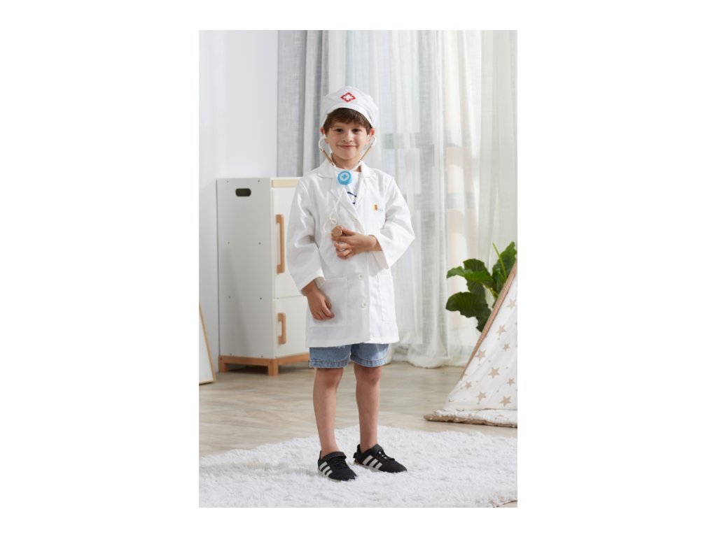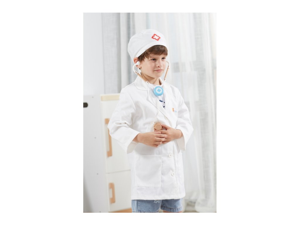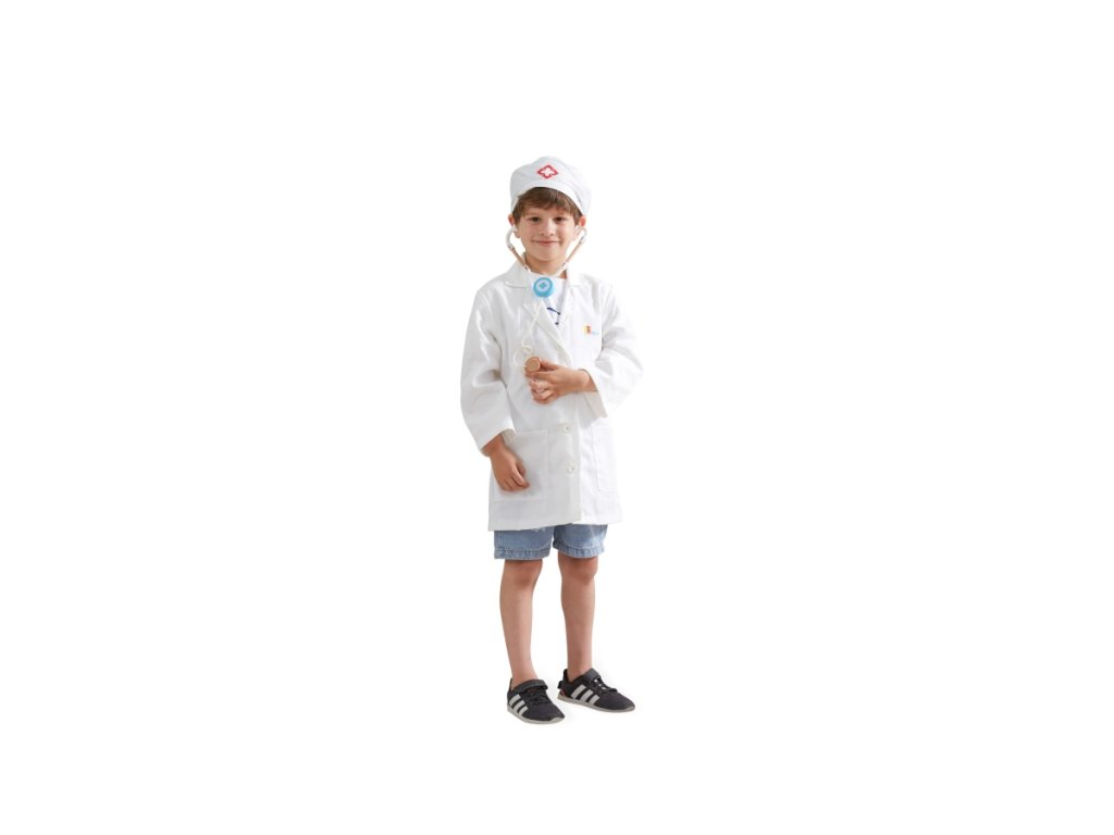 Kostým doktor. Sada obsahuje plášť a čepici. Určeno pro děti 3-6 let. Rozměry pláště cca 38x60 cm. Baleno v krabici. Rozměry balení 23x30x4 cm.Doplňkové parametry