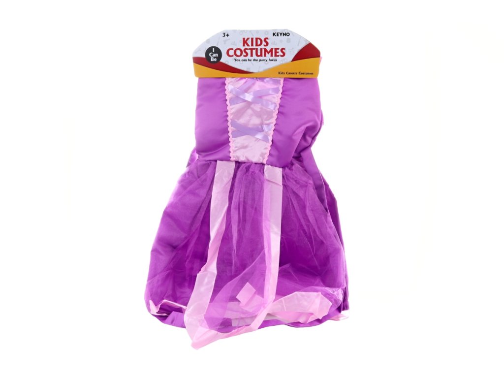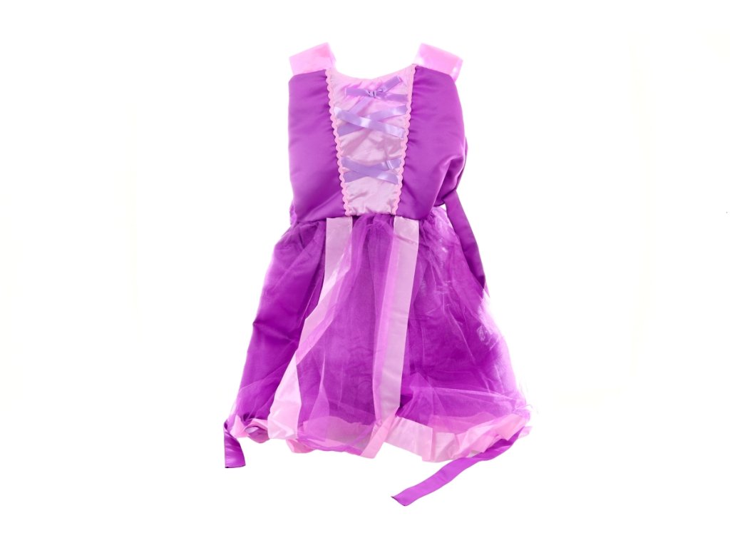 Dívčí kostým - šaty fialové. Rozměry: délka 68 cm, šířka ramínek 26 cm,šířka pasu 24 cm (lze natáhnout až na 30 cm). Baleno v sáčku s ramínkem. Rozměry balení 35x70 cm. Věk 3+Doplňkové parametry
