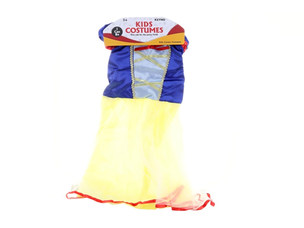 Dívčí kostým - šaty ve stylu Sněhurky. Rozměry: délka 68 cm, šířka ramínek 28 cm,šířka pasu 30 cm (nelze natáhnout). Baleno v sáčku s ramínkem. Rozměry balení 35x70 cm. Věk 3+Doplňkové parametry