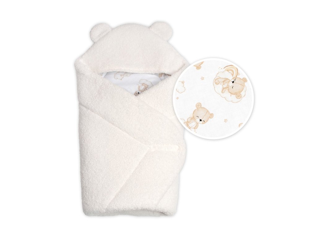 Beránková zavinovačka s kapucí bavlna/beránek, Teddy - Medvídek smetana