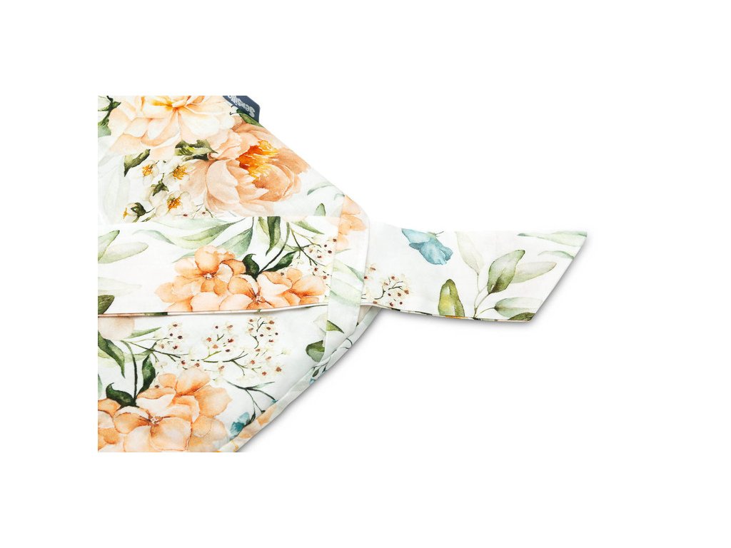 Zavazovací zapínání pomocí široké bavlněné stuhy umožňuje pohodlné a bezpečné držení dítěte