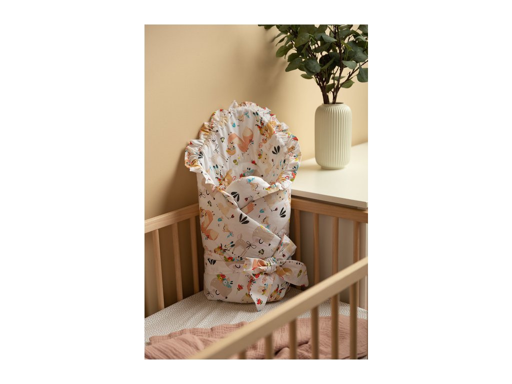 Oboustranná zavinovačka s volánkem je navržena speciálně pro novorozence a kojence.Poskytuje miminku pocit bezpečí, tepla a pohodlí již od prvních dnů života.