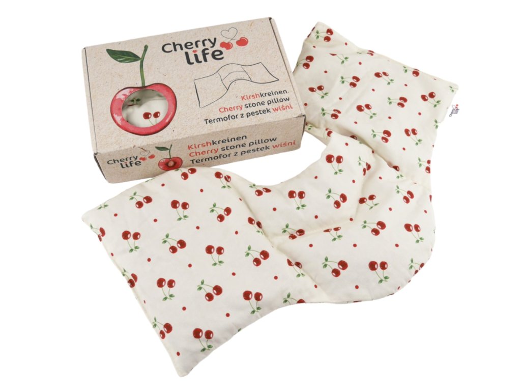 Ramenní nahřívací pás s třešňovými pecičkami, Cherry life, ecru