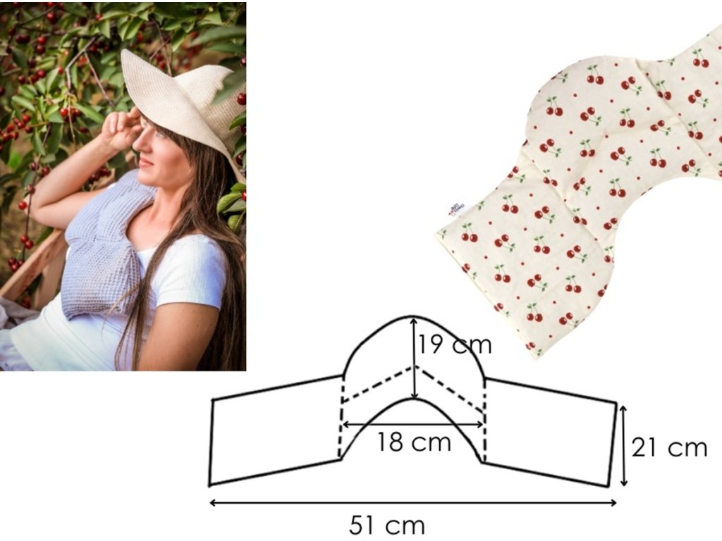 Nahřívací bavlněný pás s třešňovými pecičkami.Slouží k ochlazení či zahřátí neduhů a při jeho použití nehrozí riziko popálenin, omrzlin, otravy látkou naplňující termofor nebo alergických kožních lézí.