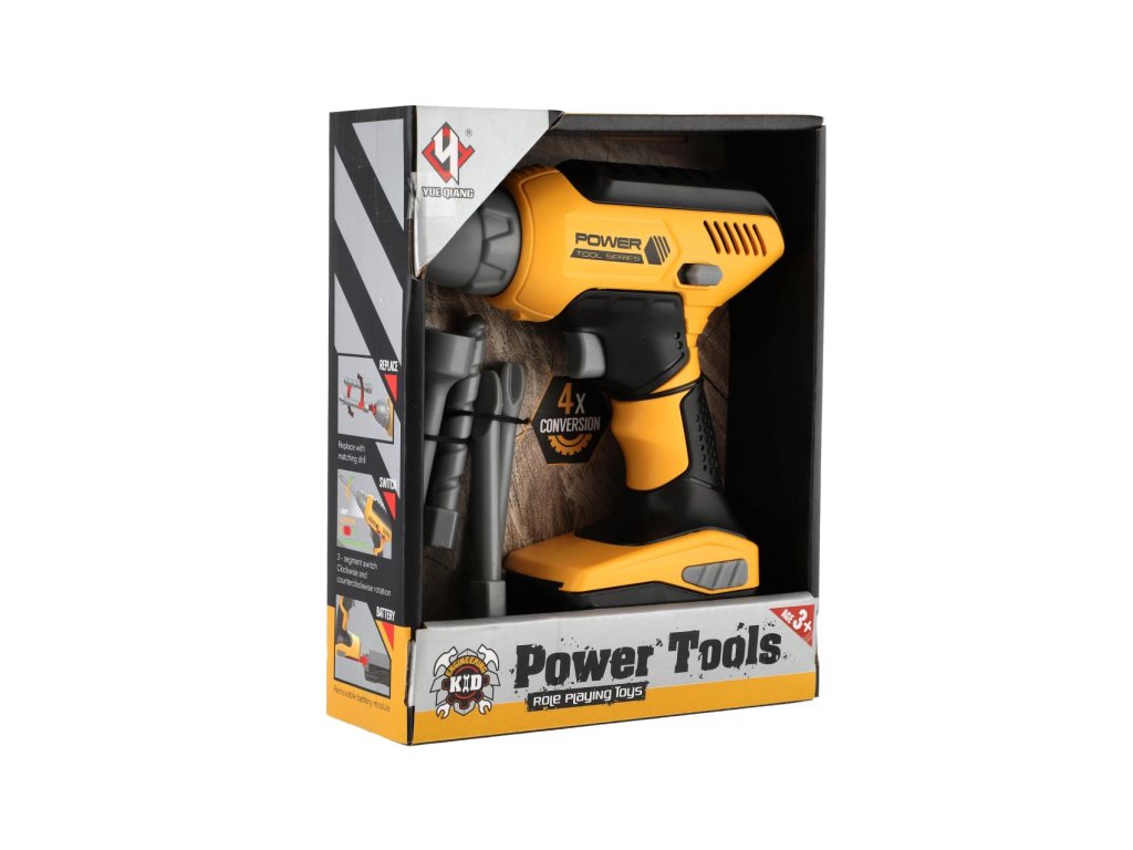 Chceš pomáhat tatínkovi při opravách doma a chybí ti ve tvé výbavě vrtačka? Nevadí! Aku vrtačka se po zmáčknutí tlačítka točí a má vyměnitelné vruty. Vydává zvuky vrtání. Baterie 3 x AAA nejsou součástí balení.Rozměry balení 18 x 22 x 6 cm.