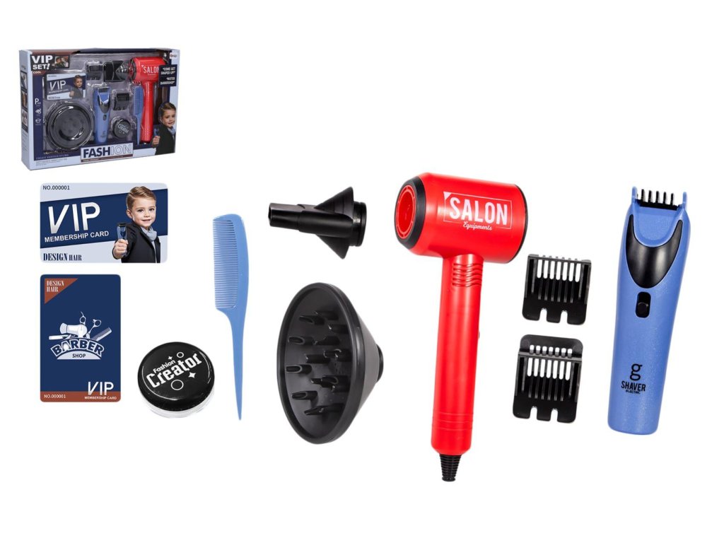 Styl a péče nejsou jen pro holky! Tento kosmetický set pro kluky je skvělým úvodem do světa osobní hygieny a zábavného upravování. . Vhodné jako dárek, na cesty nebo do dětského pokoje – prostě cool sada pro kluky, kteří se rádi cítí upravení. Obsahuje funkční fén, strojek na vlasy, hřeben, nástavce, členskou kartu do salonu.Velikost fénu 20cm.