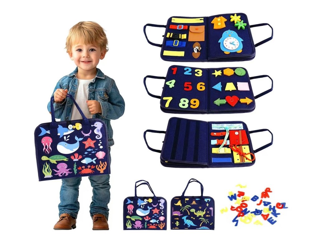 Senzorická busy kniha, to je zábava a rozvoj v jednom! Objevte kouzlo senzorické busy knihy, která zábavnou formou rozvíjí jemnou motoriku, logické myšlení, soustředění i smyslové vnímání Vašeho dítka. Kniha obsahuje různorodé motorické aktivity jako jsou knoflíky, přezky, zipy, suché zipy, tkaničky a další. Je vhodná pro hmatové, zrakové i zvukové podněty. Kniha je měkká a lehká. Perfektní jako dárek k narozeninám, Vánocům nebo jen tak pro radost i rozvoj.