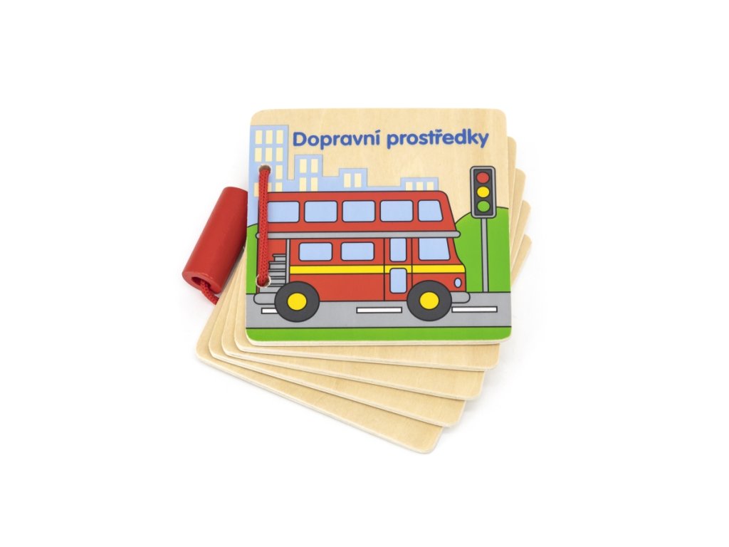 Dřevěná knížka s obrázky dopravních prostředků v českém jazyce. Rozměr balení cca 10,5 x 9 x 2 cm. Věk 12m+Doplňkové parametry