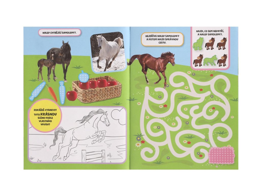 Kniha aktivit s nálepkami, která zabaví každé zvědavého milovníka koní. Zabav se a něco se o koních i přiuč!Velikost sešitu: 21 x 28 cm