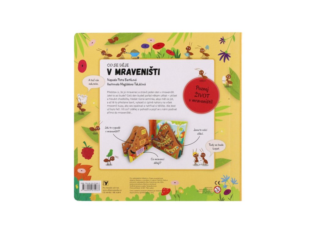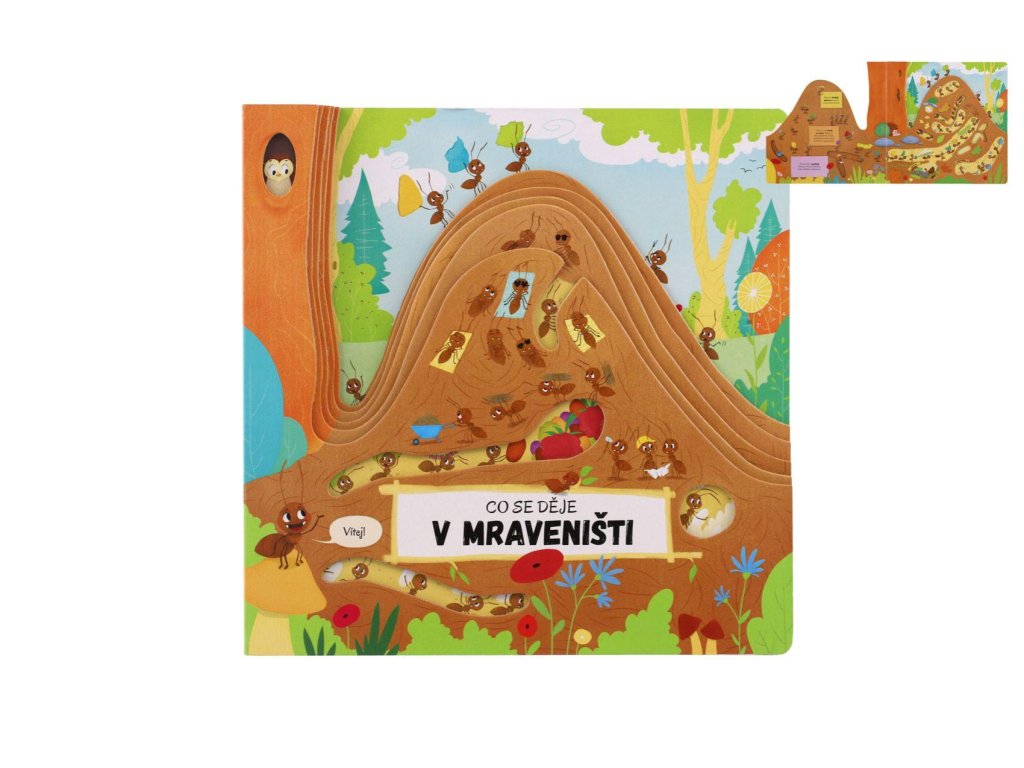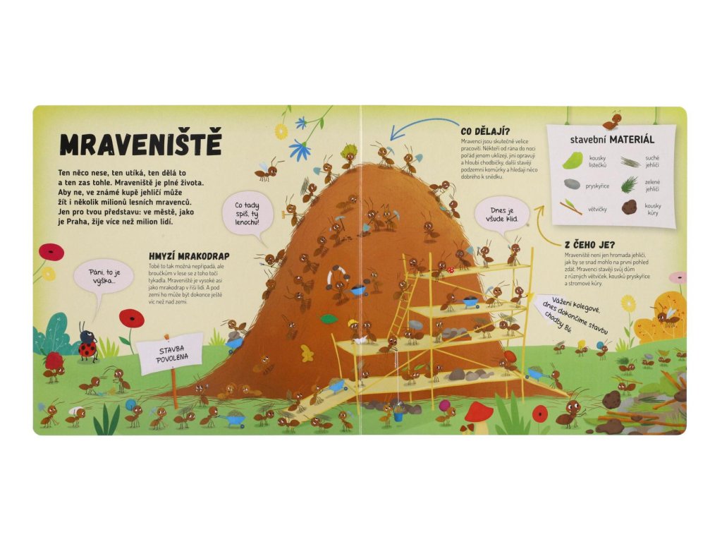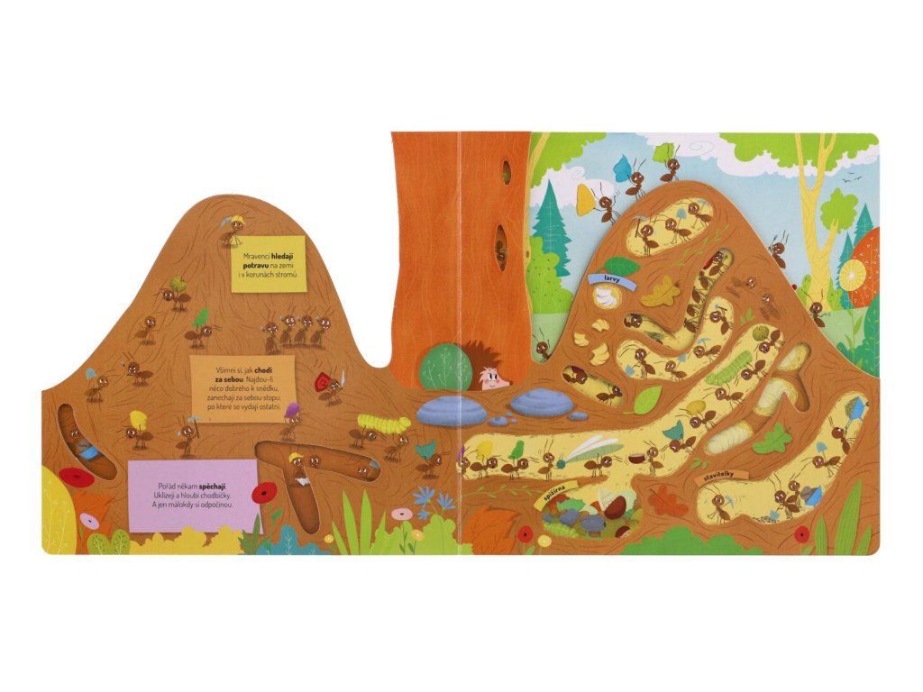 Poznej život v mraveništi!Představ si, že jsi mravenec a strávíš jeden den v mraveništi. Jaké to asi bude? Celý den budeš pořád někam utíkat – uklízet a hloubit chodbičky, hledat různá semínka, abys měl co jíst, a až tě to přestane bavit, vylezeš si úplně nahoru na vršek mravenčí kupy, aby ses opaloval a nahříval si tělíčko. Ale dost už bylo řečí. Víš co? Udělej si pohodlí a pojď se s námi podívat přímo do mraveniště…