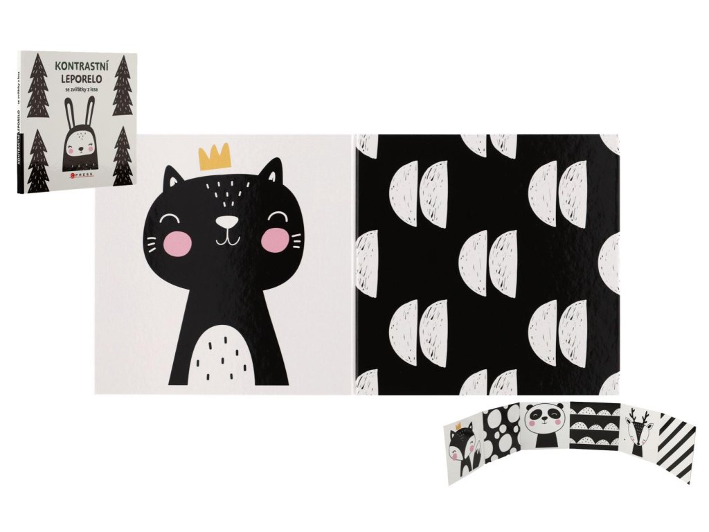 Děti těsně po narození vnímají zejména ostré kontrasty světlých a tmavých ploch, které upoutají jejich pozornost. Proto je toto leporelo vhodné už od prvních týdnů života vašeho miminka. Střídající se kontrastní tvary a roztomilé ilustrace v severském stylu děti zaujmou a později se na nich mohou učit poznávat jednotlivá lesní zvířátka. Praktický tvar harmoniky umožňuje knížku rozložit a postavit před děťátko, i když zatím není schopno samostatného listování.Rozměr složeného leporela: 15,5 x 15 cm
