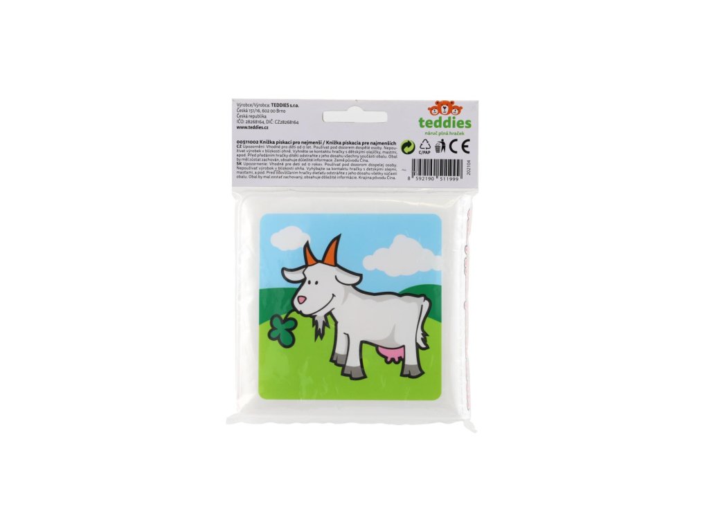 Pískací knížka s pestrými obrázky zvířátek zaujme dětskou pozornost a rozvíjí fantazii.Velikost: 13 x 12,5 cm.