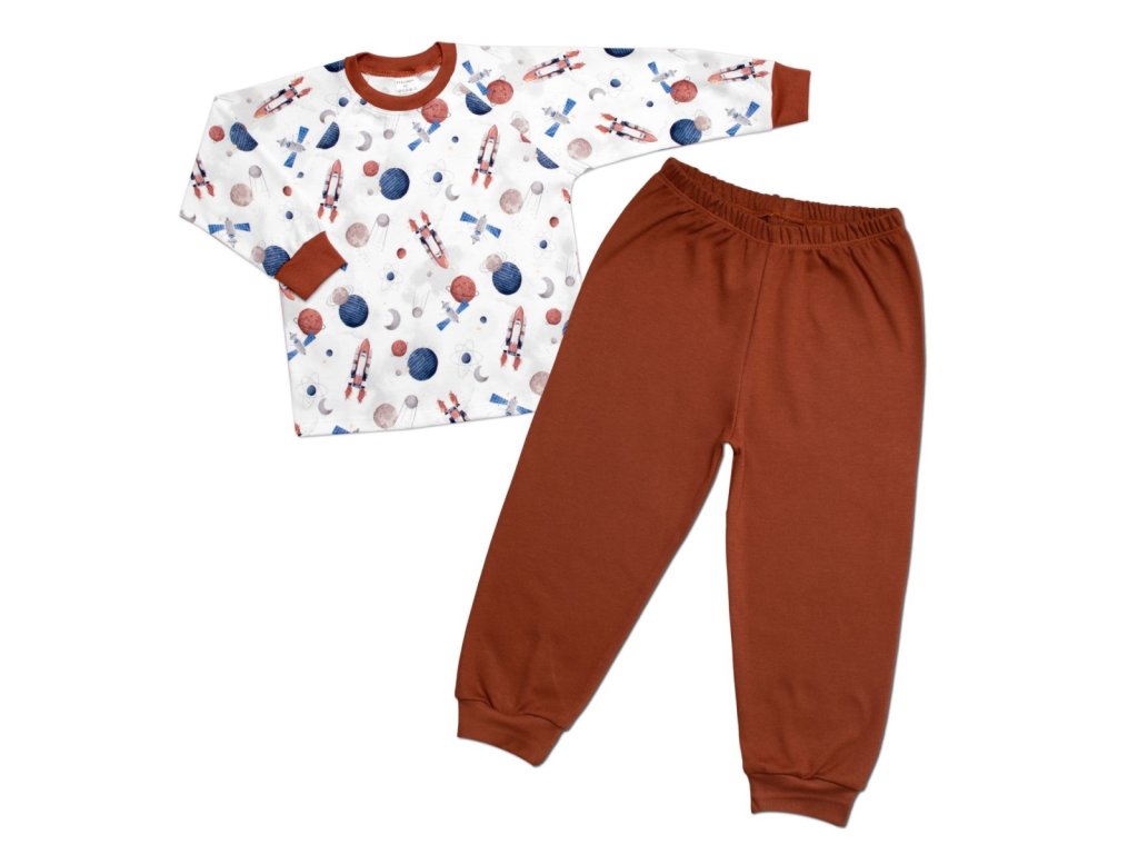 Dětské pyžamo 2D sada, triko + kalhoty, Cosmos, Mrofi, hnědá/bílá