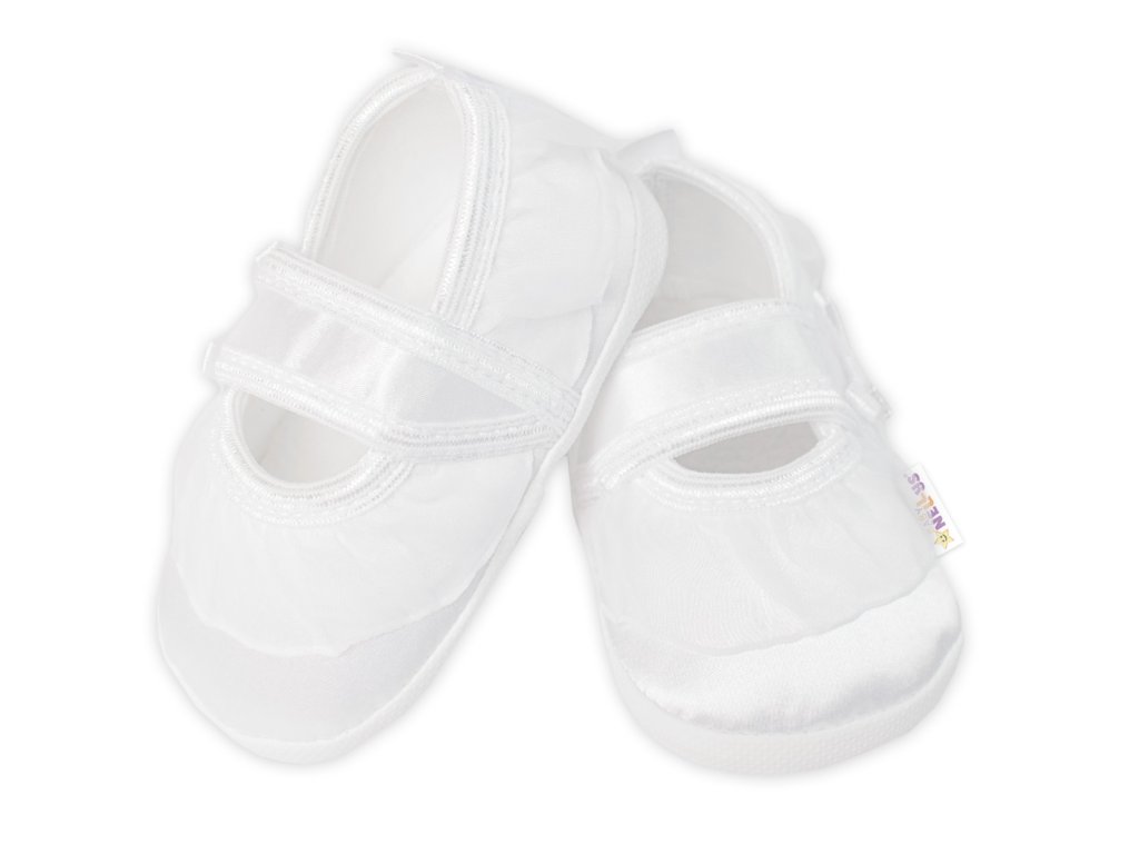 Kojenecké capáčky/botičky saténové s volánkem, Baby Nellys, bílé
