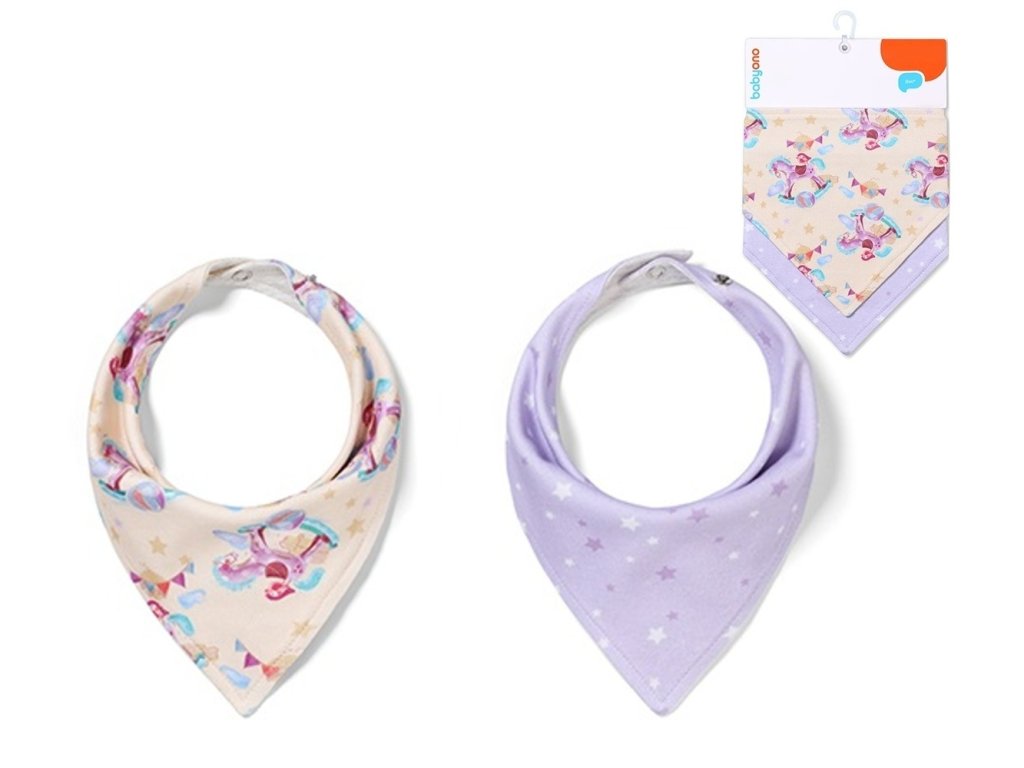 Dětský bryndáček/šátek 2D sada BabyOno Koník, lila/smetana