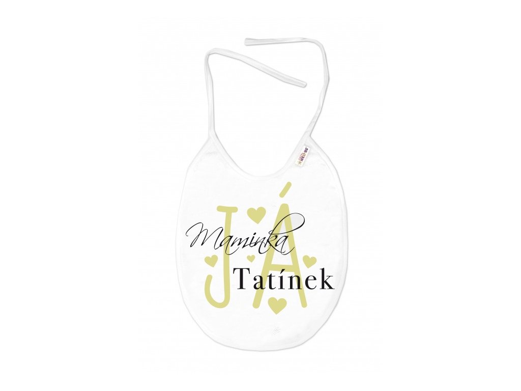 Nepromokavý bryndáček, 24 x 27 cm - Maminka, Tatínek, JÁ, Baby Nellys - bílý