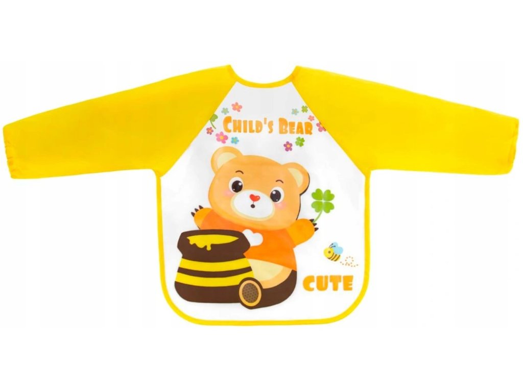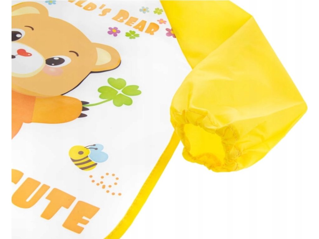 Zástěrka, bryndák nepromakavý s dlouhým rukávem, Medvídek, žlutá