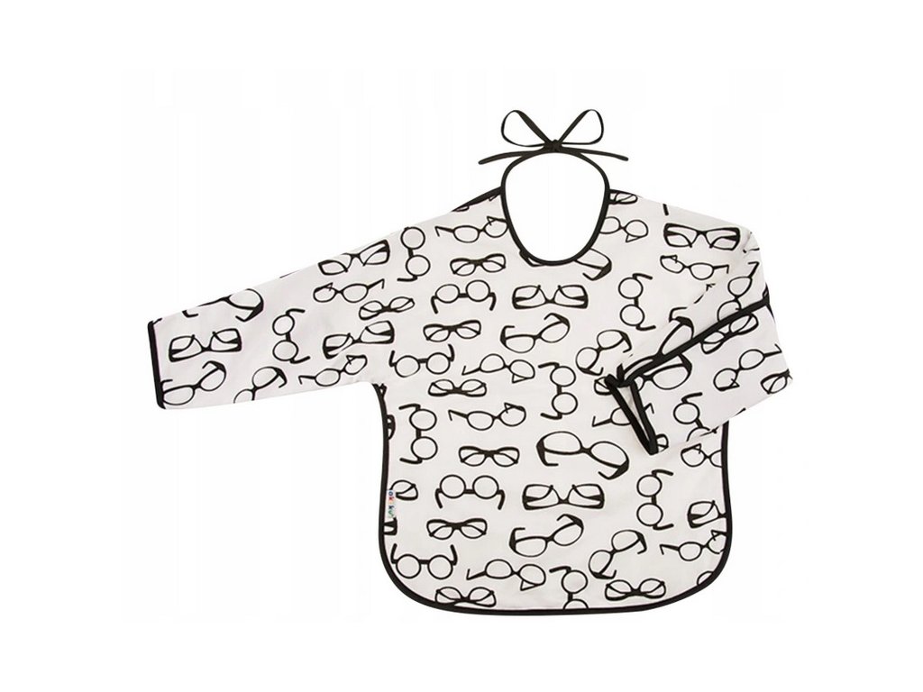 Zástěrka, bryndák nepromakavý s dlouhým rukávem Brýle - bílý
