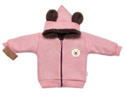 Oteplená pletená bundička Teddy Bear, Baby Nellys, dvouvrstvá, růžová