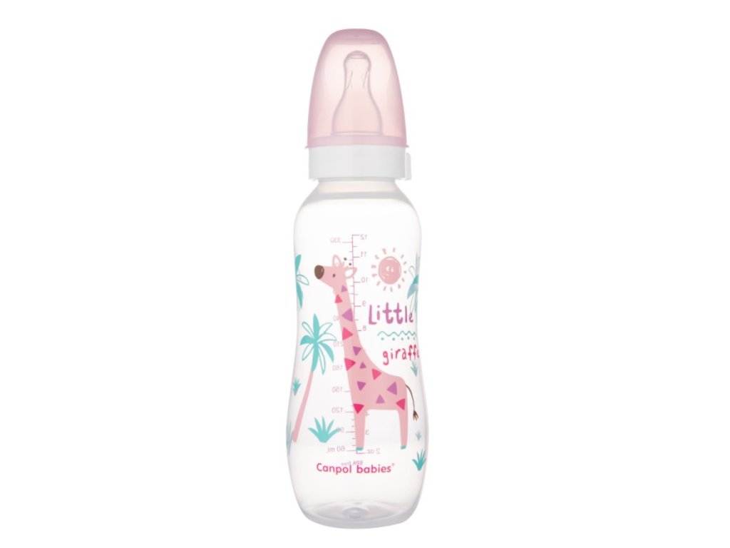 Canpol babies Lahvička s potiskem Žirafka 330 ml, růžová