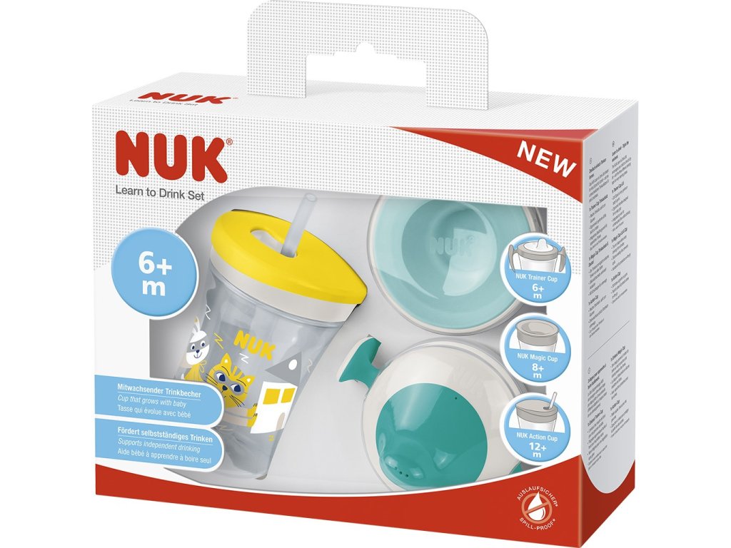 - 1x nástavec na hrneček NUK Trainer Cup (6m+), 1x nástavec na hrneček NUK Magic Cup (8m+), 1x nástavec na hrneček NUK Action Cup (12m+)