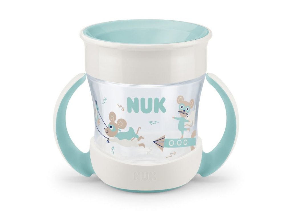 Hrneček NUK Mini Magic Cup umožňuje i těm nejmenším pít jako velké děti. 360° pitný okraj podporuje dítě ve snaze učit se pít podél celého okraje - skoro jako u běžného hrnečku. Jediný „kouzelný rozdíl“ je ten, že nápoj z hrnečku nevyteče díky silikonovému disku, který utěsňuje víčko zevnitř. Pití je dětská hra - stačí jednoduše sát hranu hrnečku. Hrneček je navíc mimořádně malý a snadno se drží. Díky ergonomicky tvarovaným držátkům ho snadno mohou držet i malé prstíky a ručky. Abyste hrneček Mini Magic Cup udrželi čistý a v bezpečí, ať už jste kdekoliv, součástí je ochranné víčko.