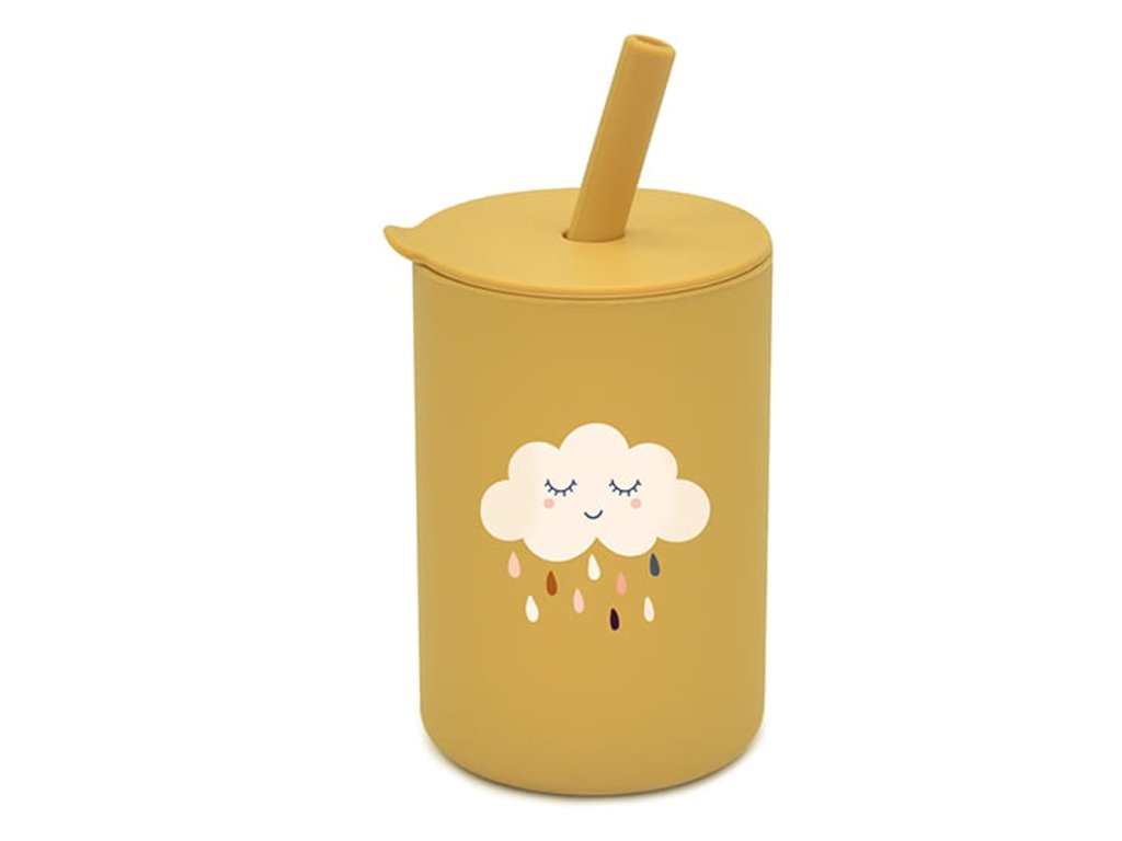 Silikonový hrnek s brčkem Mráček, 150 ml - hořčicový