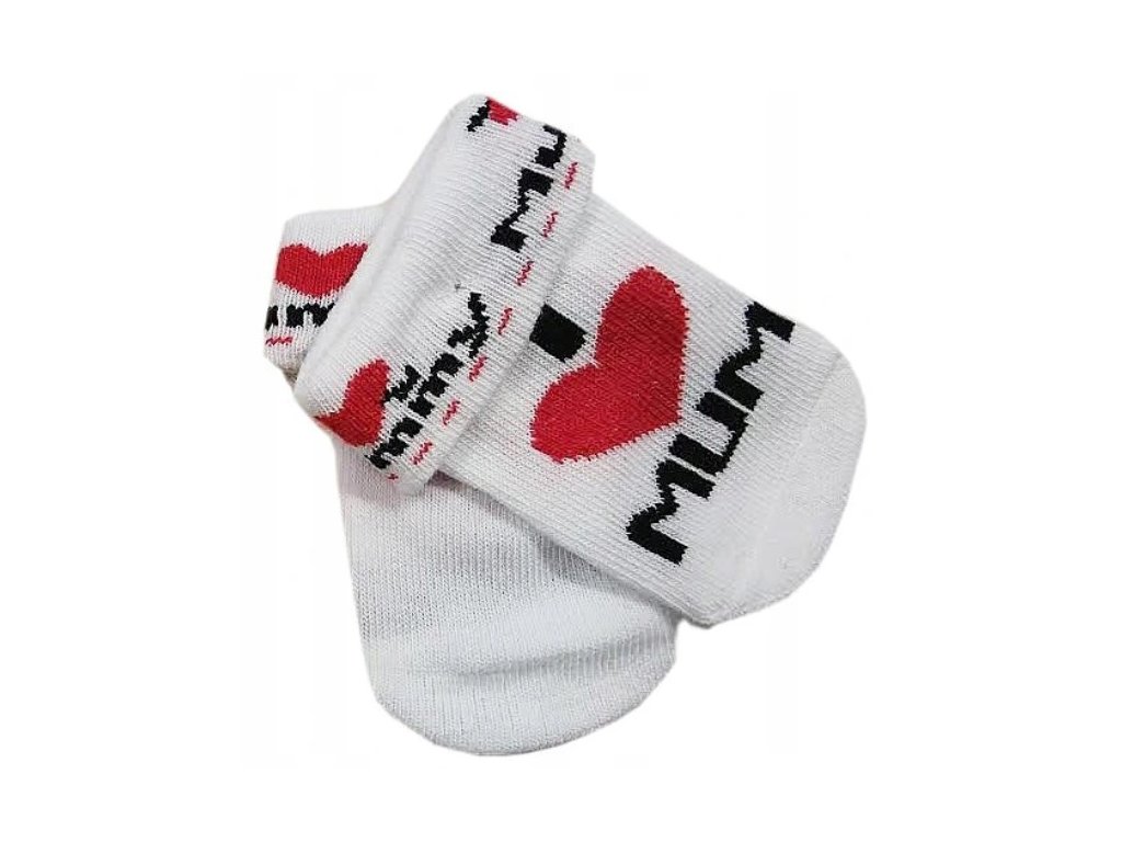 Kojenecké bavlněné ponožky I Love Mum, bílé s potiskem