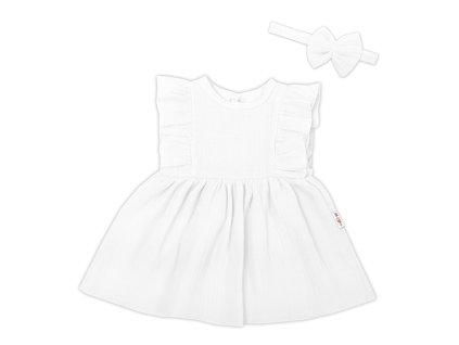 Baby Nellys 2-dílná sada mušelínové šatičky + čelenka, bílé
