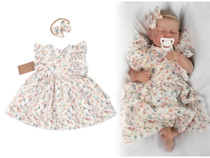 Mušelínové šatičky + čelenka 2-dílná sada Luční kvítky, Baby Nellys, smetanové