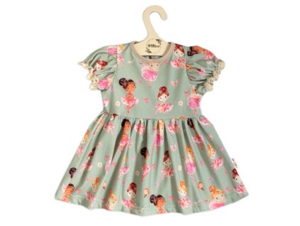 Bavlněné šatičky s ozdobným rukávkem Baletka, Baby Nellys, olivové