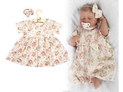 Mušelínové šatičky + čelenka 2-dílná sada Pivoňky, Baby Nellys, smetanové