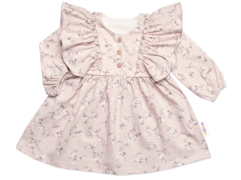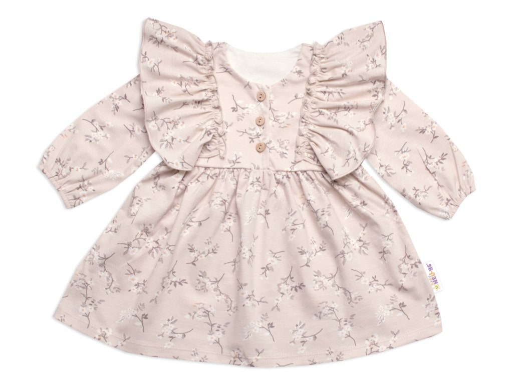 Kojenecké šaty dlouhý rukáv s volánky Sára, bavlna, Mrofi, cappucino