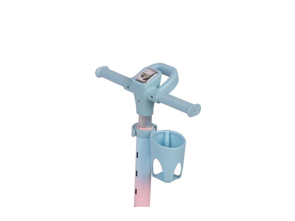 Koloběžka má držák na láhev, bezpečný široký protiskluzový nášlap a zadní brzdu pro snadné zastavení.