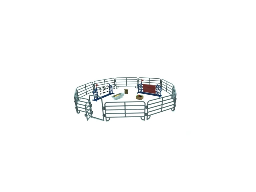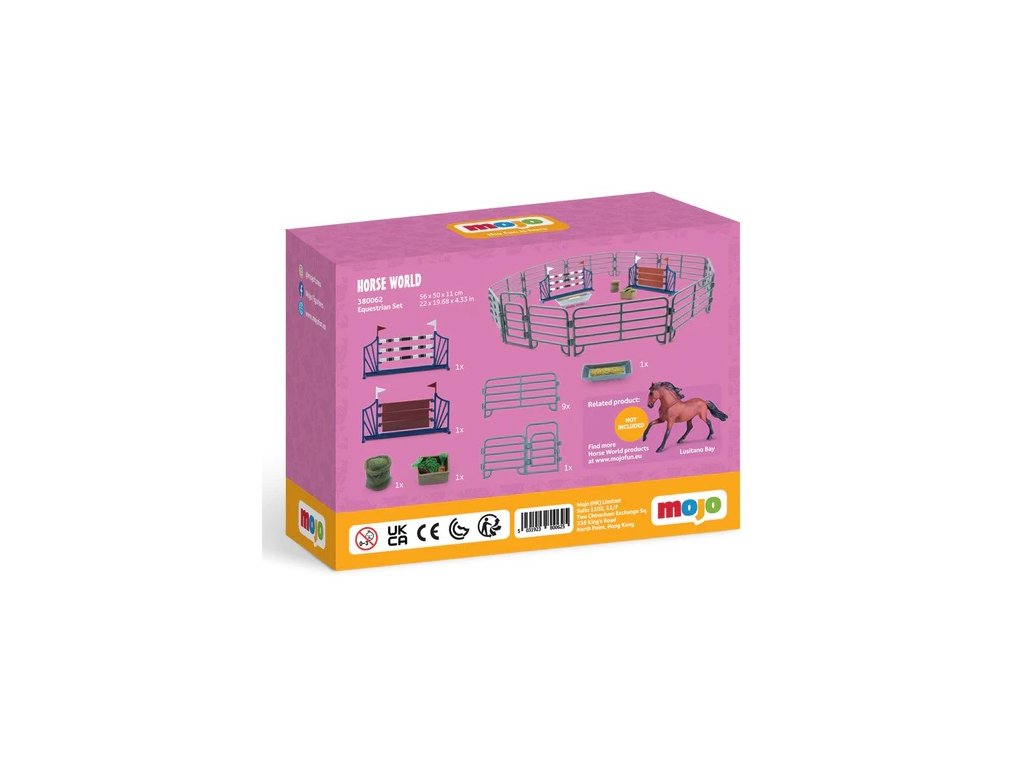 Poznejte svět koní a jejich potřeb k chovu! V této sadě najdete ohradu s překážkami, kde se učí koníci jezdeckému umění. Dále 1x Pytel plný ovsa, žlab se senem a bedýnku se zeleninou. Tato realistická ohrada může dětem dopomoci poznávat skutečné vlastnosti a charakter její předlohy. Každý produkt je přísně testován dle široké řady mezinárodních standardů. Ohrada je ručně malována. Koně nejsou součástí balení.