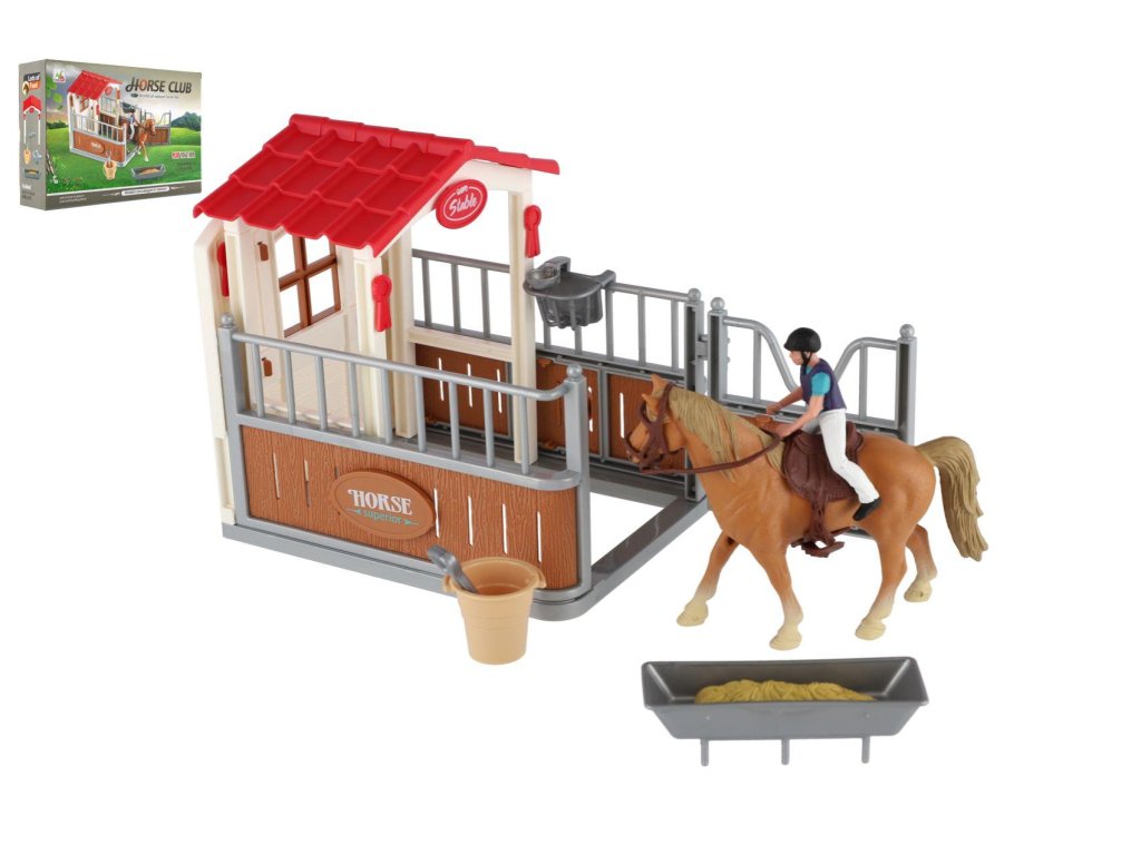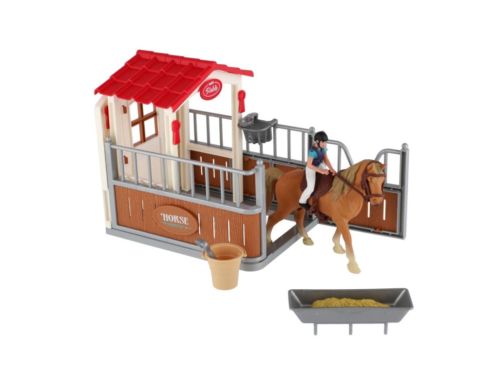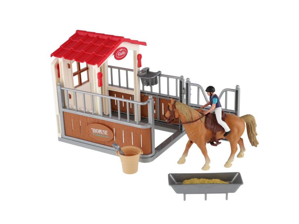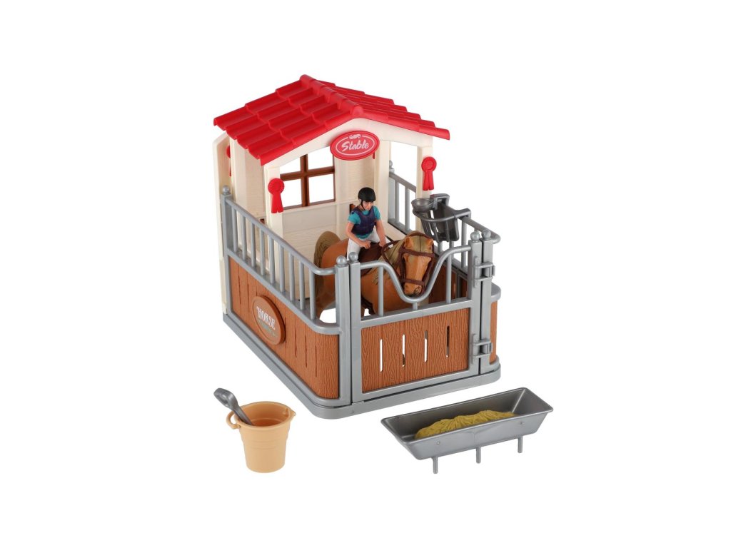 Krásná sada nejen pro malé farmáře a milovníky koní, ale také fajn doplněk do každého pokojíčku. Snadno postavíte stáj pro koníka a díky doplňkům v sadě se dokáže o svého mazlíčka skvěle postarat.Rozměr balení: 30 x 20 x 8 cm