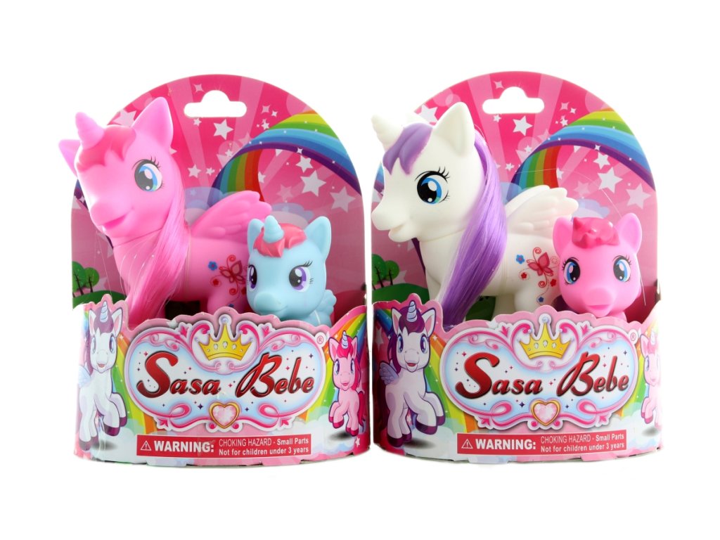 Krásná sada jednorožce s poníkem. Baleno v otevřené papírové krabičce. Materiál plast. Jednorožec má česací hřívu. 2 barvy, dodáváme dle skladové dostupnosti. Rozměry balení cca 12x17x7 cm. Velikost jednorožce 8,5x11 cm, velikost poníka 6,5x6,5 cm. Věk 3+Doplňkové parametry