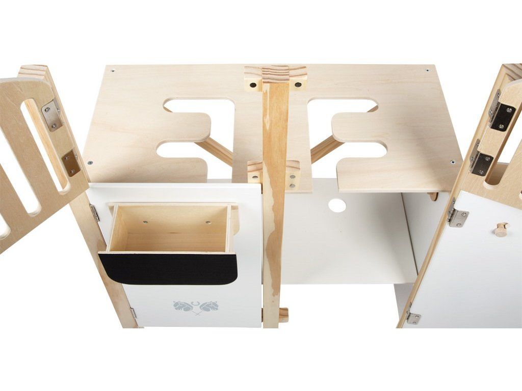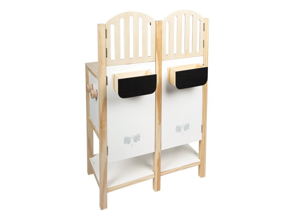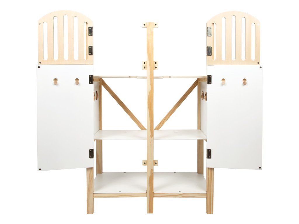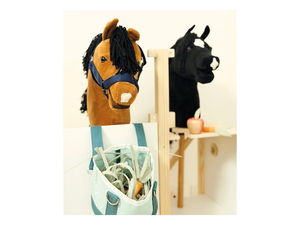 Tato detailně propracovaná stáj pro hobby koně z odolného dřeva nabízí prostor pro dva koníky a zaujme promyšlenými prvky, které přinášejí realistický zážitek ze hry. Odnímatelné krmné žlaby mají povrch vhodný pro psaní křídou, takže je lze využít i jako jmenovky boxů. Držáky na uzdu jsou variabilní – lze je umístit dopředu, na bok nebo je vyměnit s krmnými žlaby podle potřeby. Dveře i okna jsou vybaveny magnetickým zavíráním a dají se samostatně otevírat, což dodává hře na autentičnosti. Držák pro hobby koně se 2 výškovými polohami umožňuje, aby koník vykukoval z okna nebo stál uvnitř boxu. Spodní police poskytuje dostatek úložného prostoru pro ohlávky, potřeby na péči nebo pamlsky, takže je vše přehledně uložené a po ruce. S touto stájí se dětský pokoj promění v malou jízdárnu. Podporuje kreativní hraní rolí zaměřené na péči o koně, ježdění i každodenní život ve stáji.