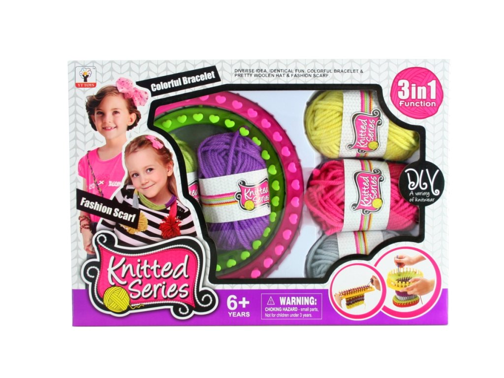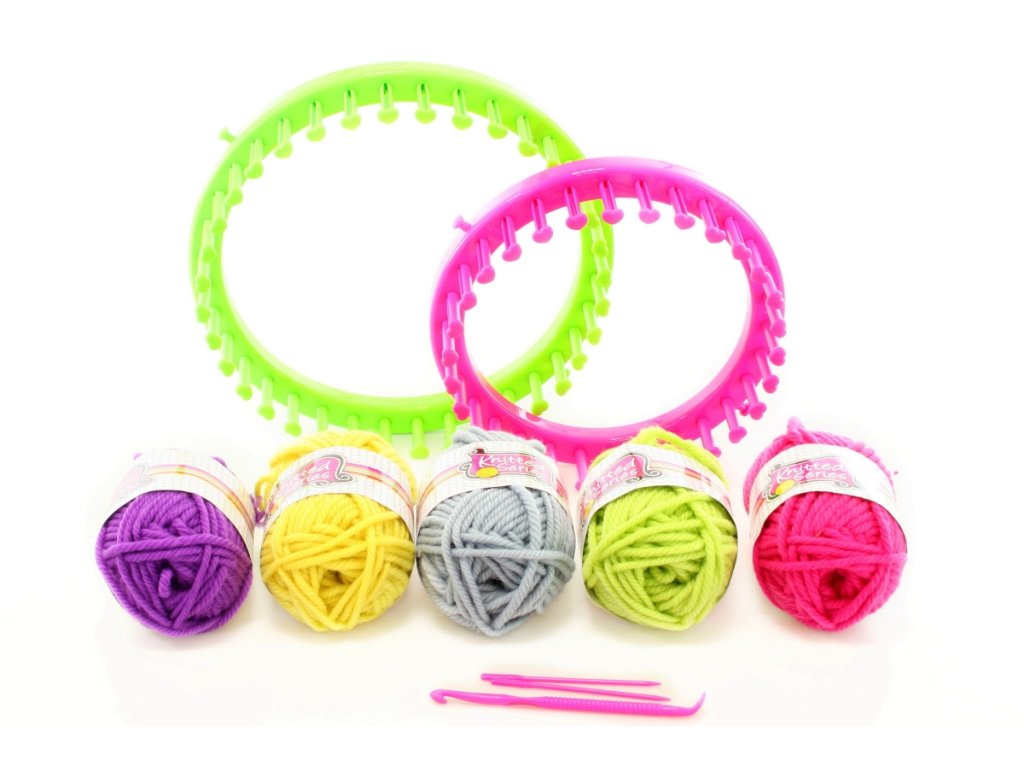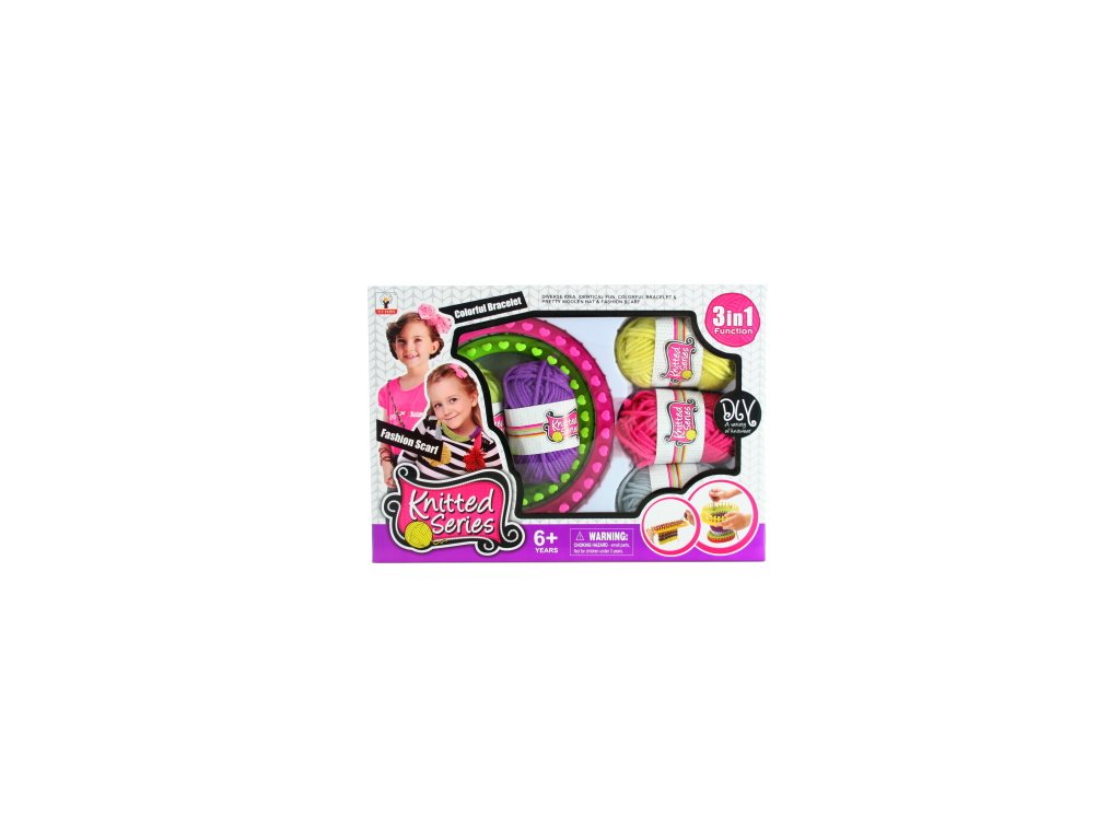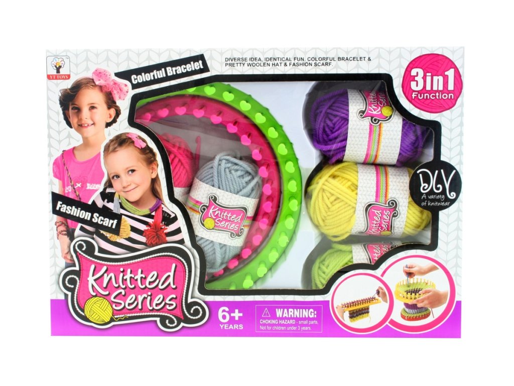 Sada pletení obsahuje 5 klubek vlny, 2 tkalcovské stavy o průměru cca 21 cm a 17 cm, háček a návod na výrobu. Výsledným výrobkem může být barevný náhrdelník, šála nebo čepice. Rozměry balení cca 41 x 29 x 7 cm. Věk 6+Doplňkové parametry